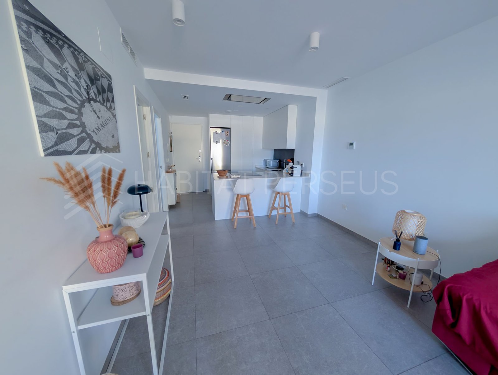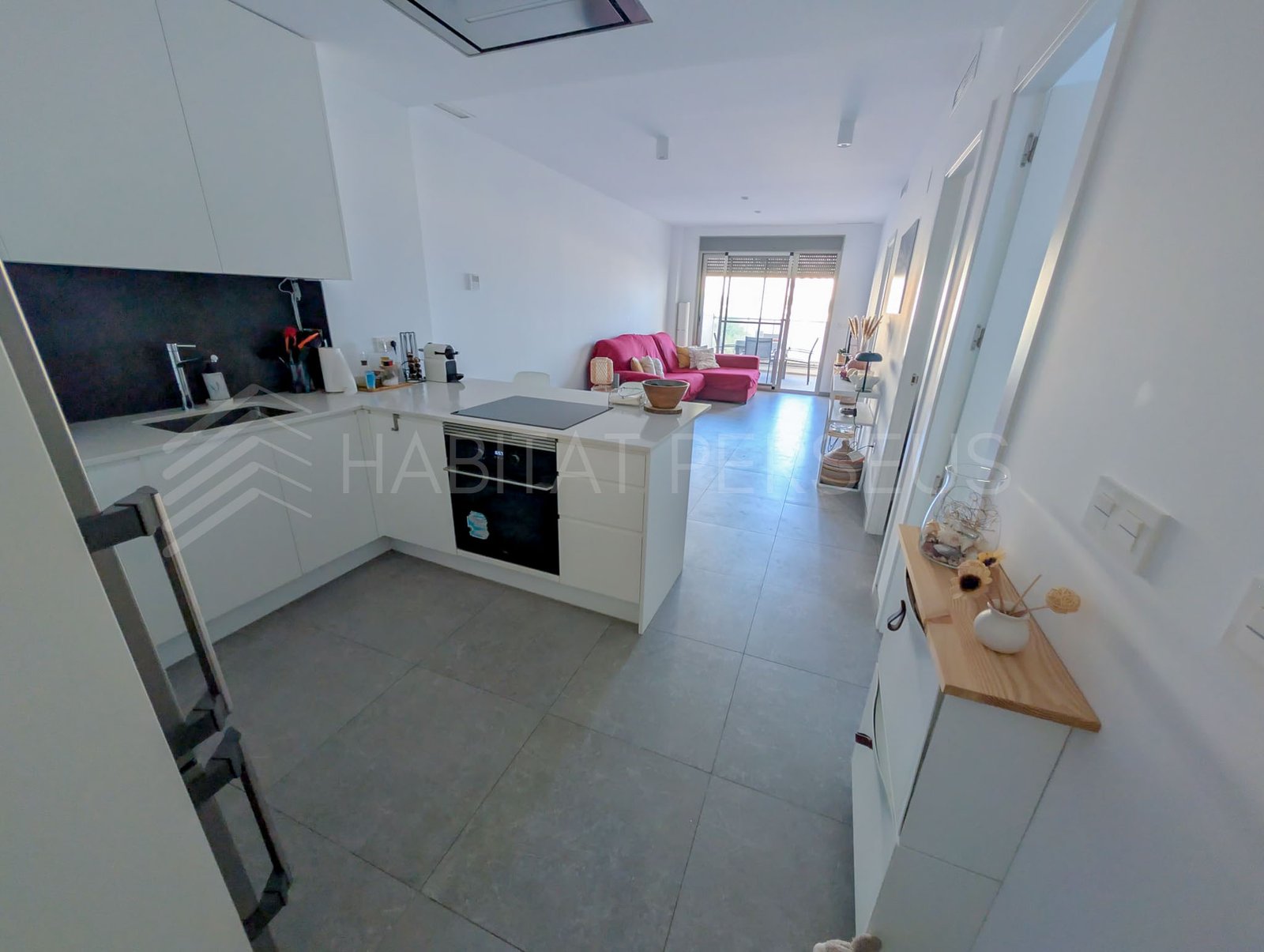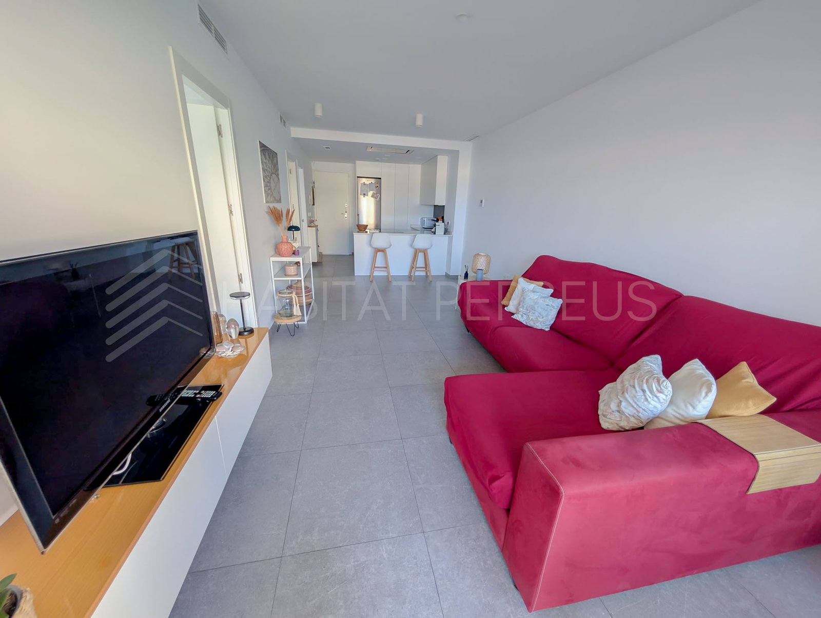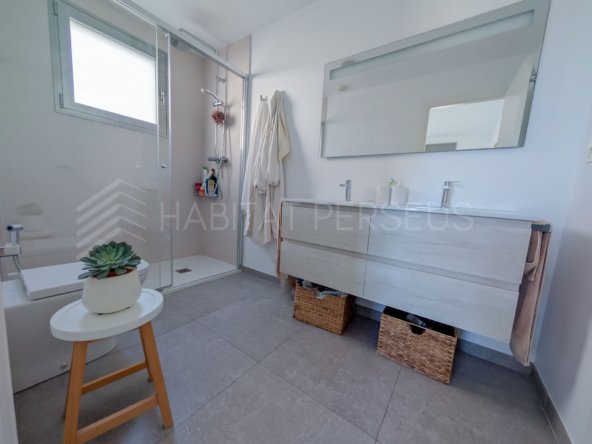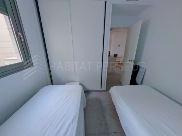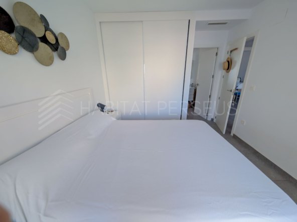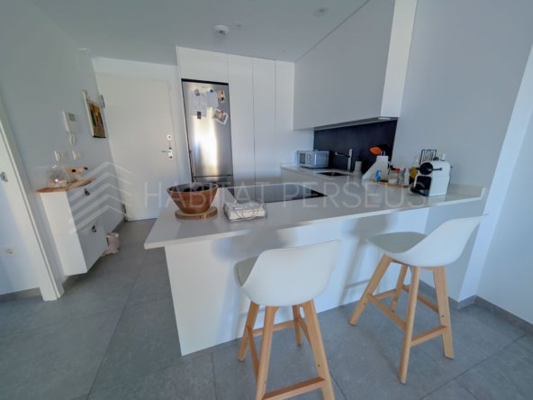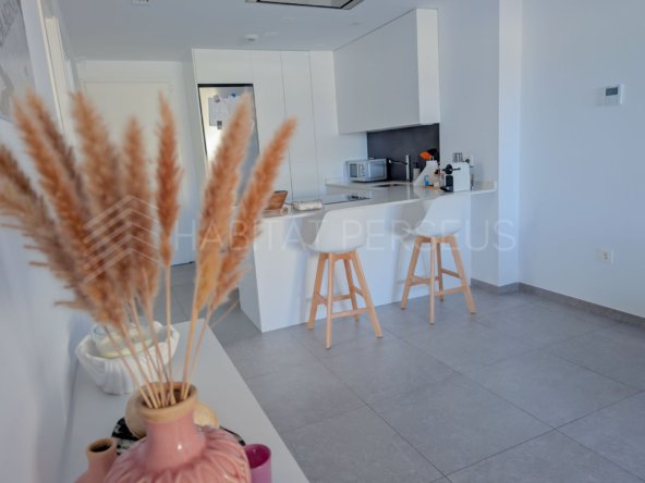 La vivienda, de 90 m², destaca por su excelente distribución y sus acabados de alta calidad. Dispone de dos dormitorios y dos baños, uno de ellos en suite dentro de la habitación principal, que además cuenta con salida directa a la terraza. El salón, amplio y muy luminoso, se integra con la cocina americana, creando un espacio acogedor y funcional ideal para disfrutar en familia o con amigos.